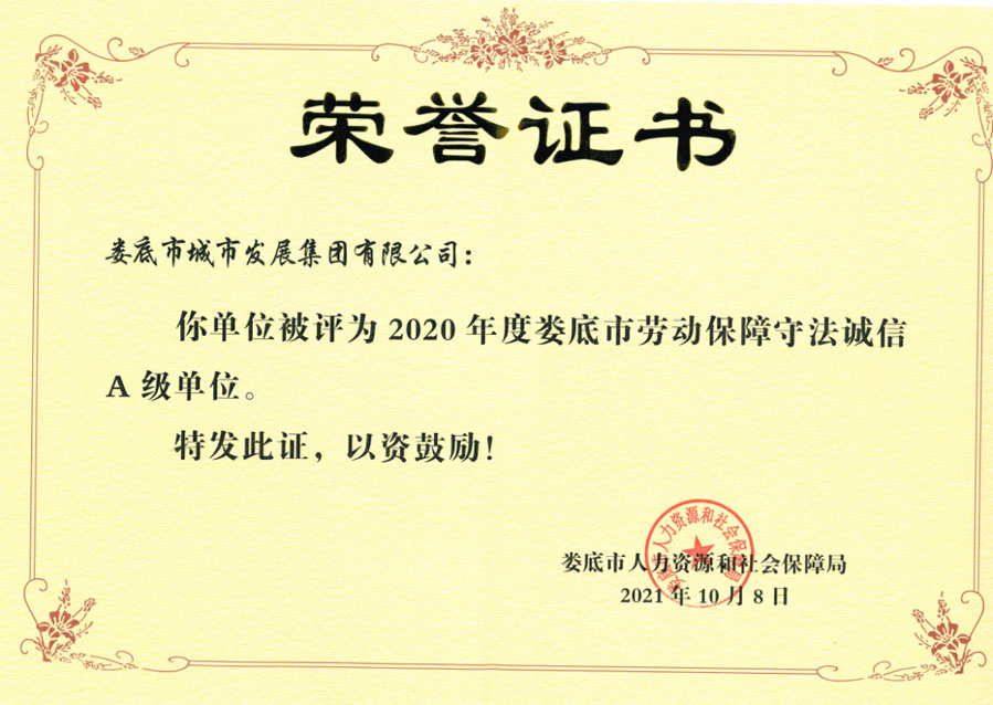 近日,婁底市人力資源和社會保障局公布了2020年度婁底市市本級用人單位勞動保障守法誠信等級評價結(jié)果,婁底市城市發(fā)展集團(tuán)有限公司被評為“勞動保障守法誠信A級單位”。此次,婁底市千余家單位通過用人單位自主申報、市勞動監(jiān)察局初審、征求相關(guān)部門意見、市人社局審核、網(wǎng)上公示后共優(yōu)選出45家A級單位。這也是市城發(fā)集團(tuán)連續(xù)第四年獲評此榮譽(yù)。
